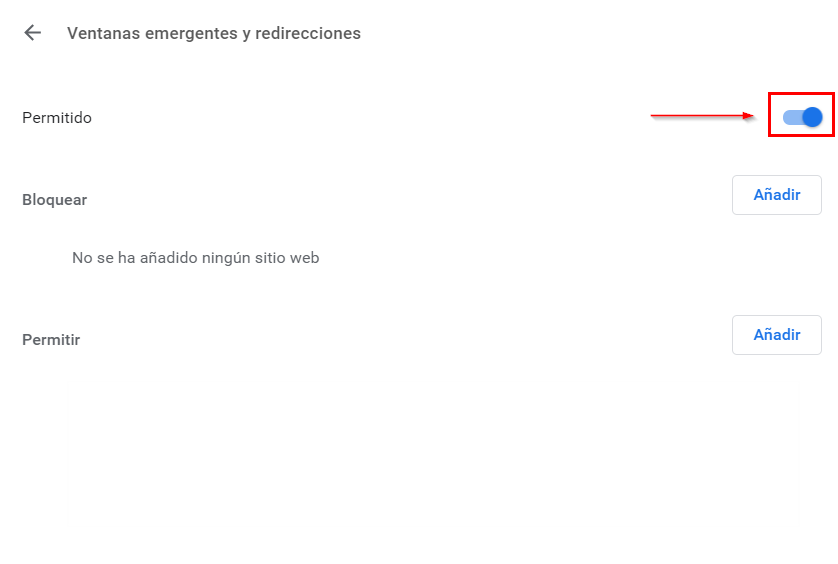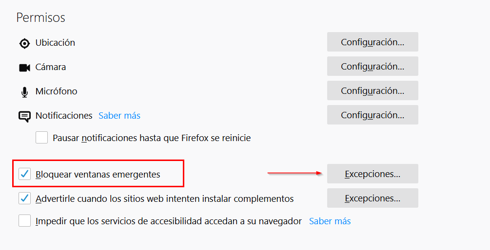 El bloqueador de elementos emergentes es una característica de cualquier navegador que permite limitar o bloquear la mayoría de los elementos emergentes. Es necesario deshabilitar esta característica, ya que interfiere en el correcto funcionamiento de la plataforma.